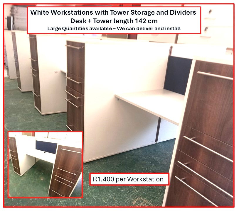 Tower memphis and white call centre / workstations - Desk can be any length. Desk length can be 100 cm upo to 180 cm. Includes back dividers,
